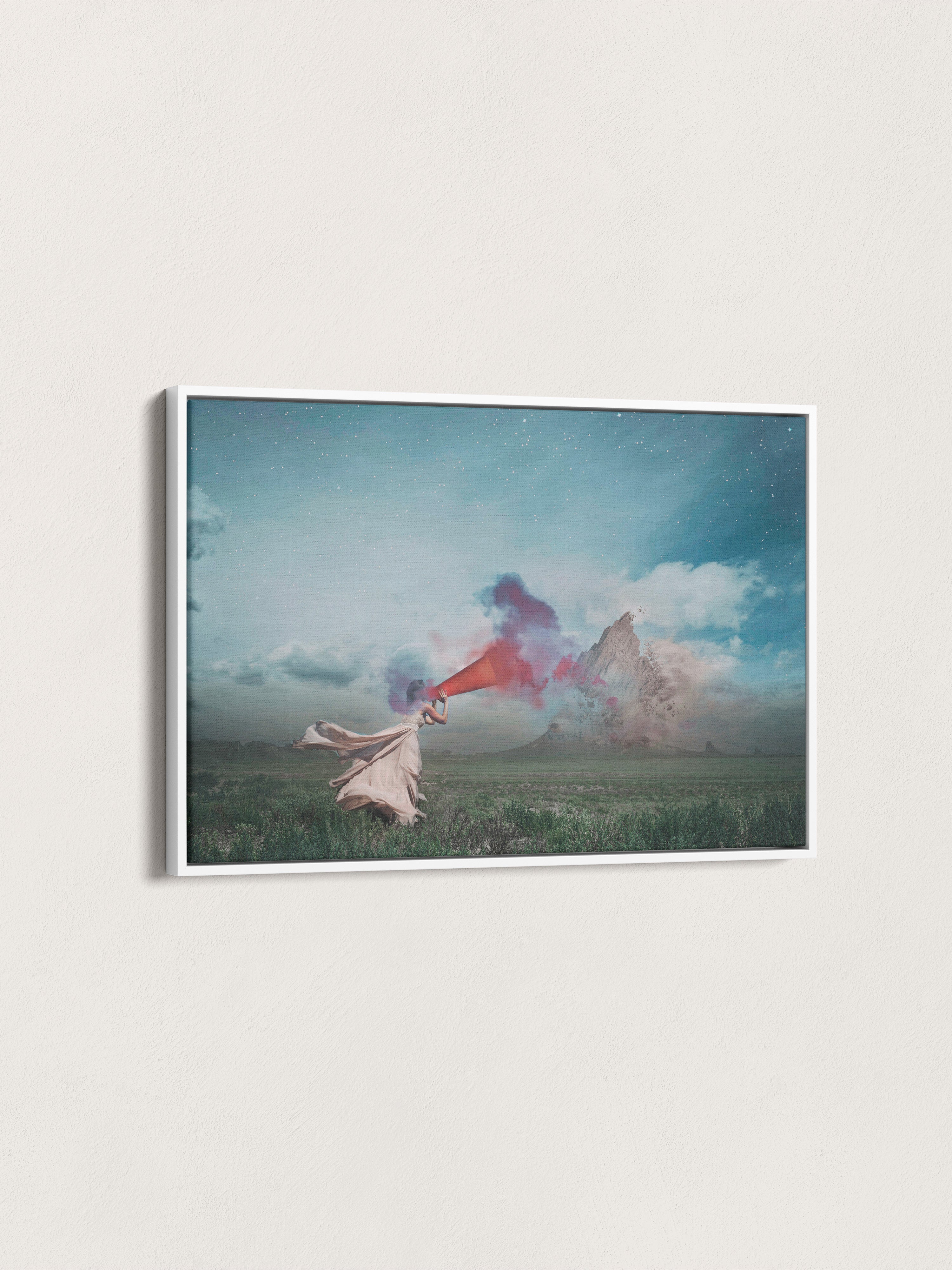 "Moving Mountains" is a bold portrayal of faith in action—a visual reminder of the power within your voice to reshape reality. The figure, standing with a megaphone, commands the towering mountain before her to move, and it begins to shatter and dissolve into the sky, responding to her unwavering belief. This artwork speaks to the strength that comes when you amplify your voice with faith, declaring change and watching the impossible unfold.
