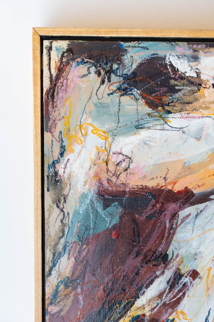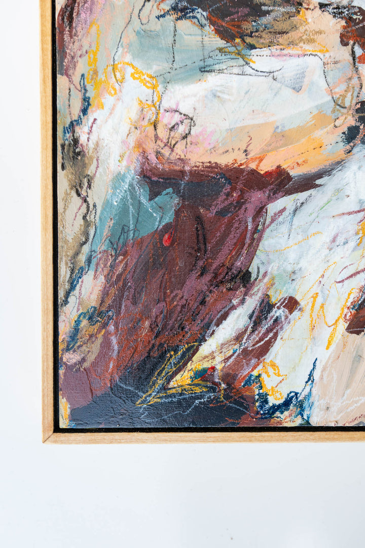 Bold strokes of rust, gold, and gray charge across this painting with energy and grit. A tribute to inner strength, abundance, and power. Framed and ready to hang. Shipping included within the contiguous U.S.